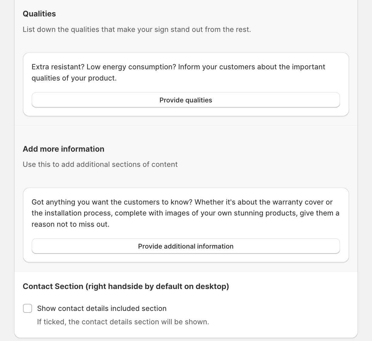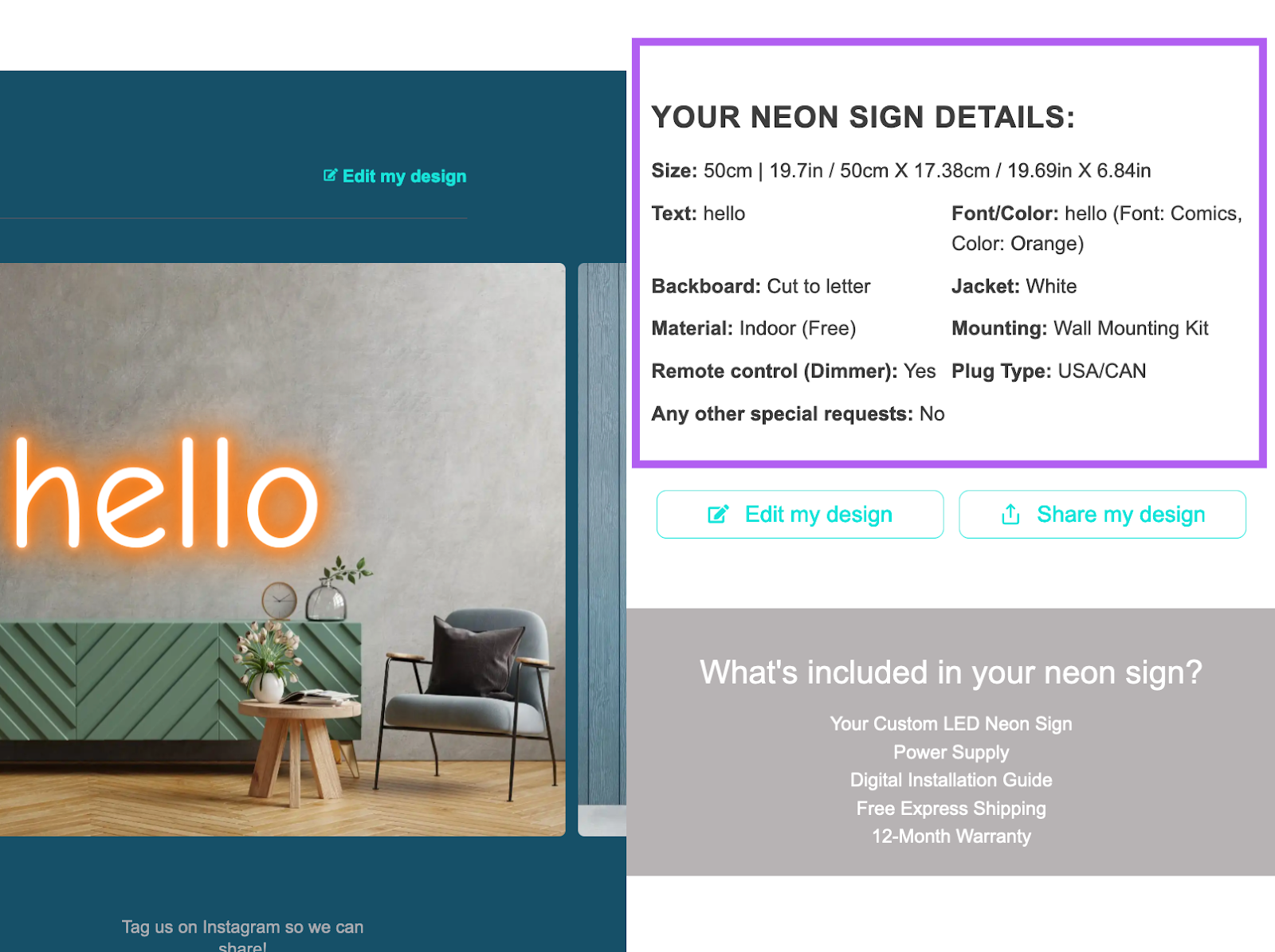 To modify sign details, scroll down to the “Chosen options section” and update the text.