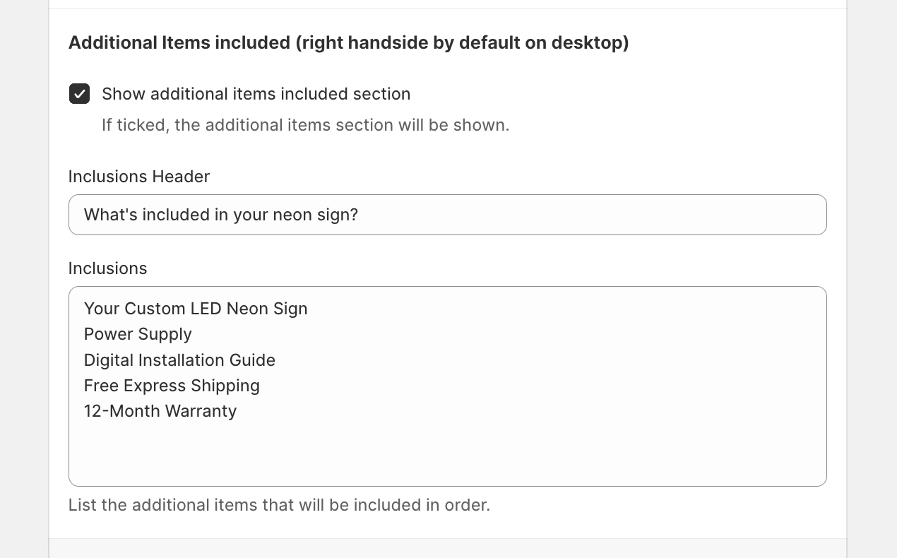 If you need to add extra information, include it in the “Additional Item Included” section.