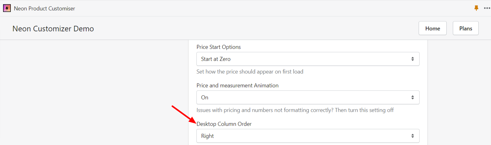Scroll down to Desktop Column Order, choose Left / Right from the dropdown menu and