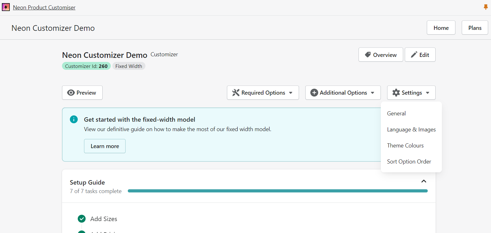 1. In the app dashboard, please click on Customiser which you want to edit: