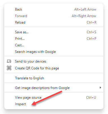 Inspect Your Storefront by right-clicking on your storefront and selecting “Inspect”.