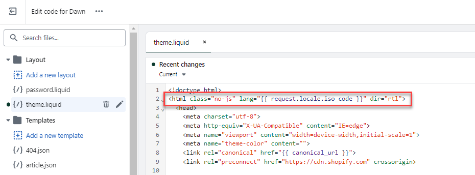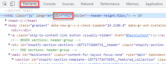 dir="rtl"to the html tag. The result will look like this:<html class="no-js" lang="###{{ shop.locale }}" dir="rtl">