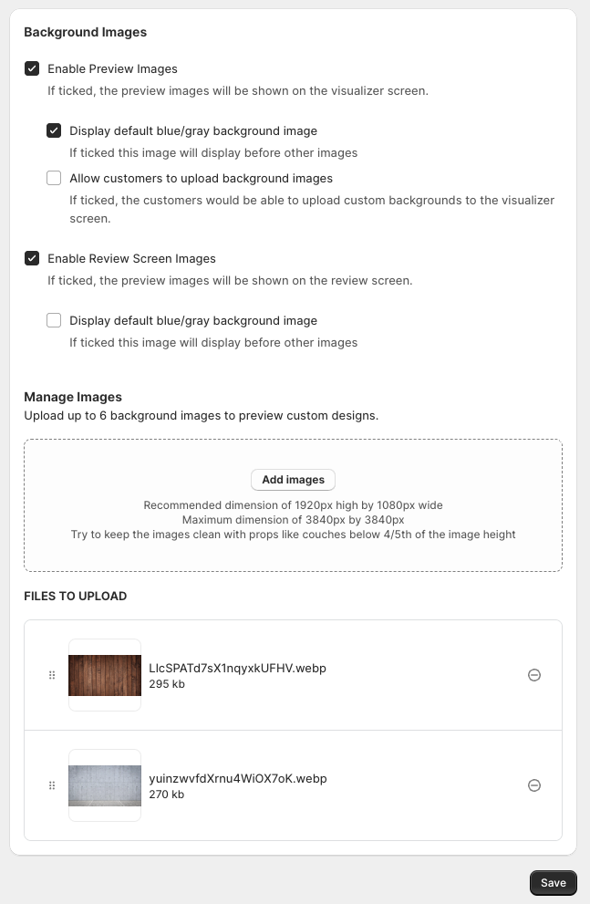 You are all done! Once you have added the background images of your choice, please click Save.