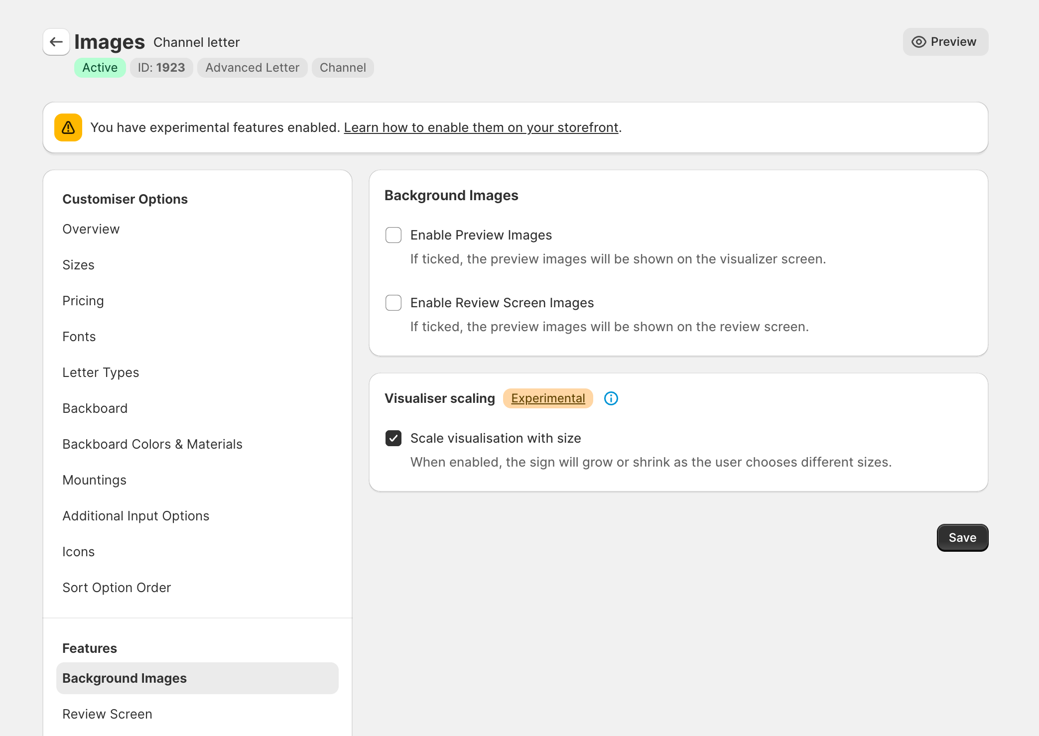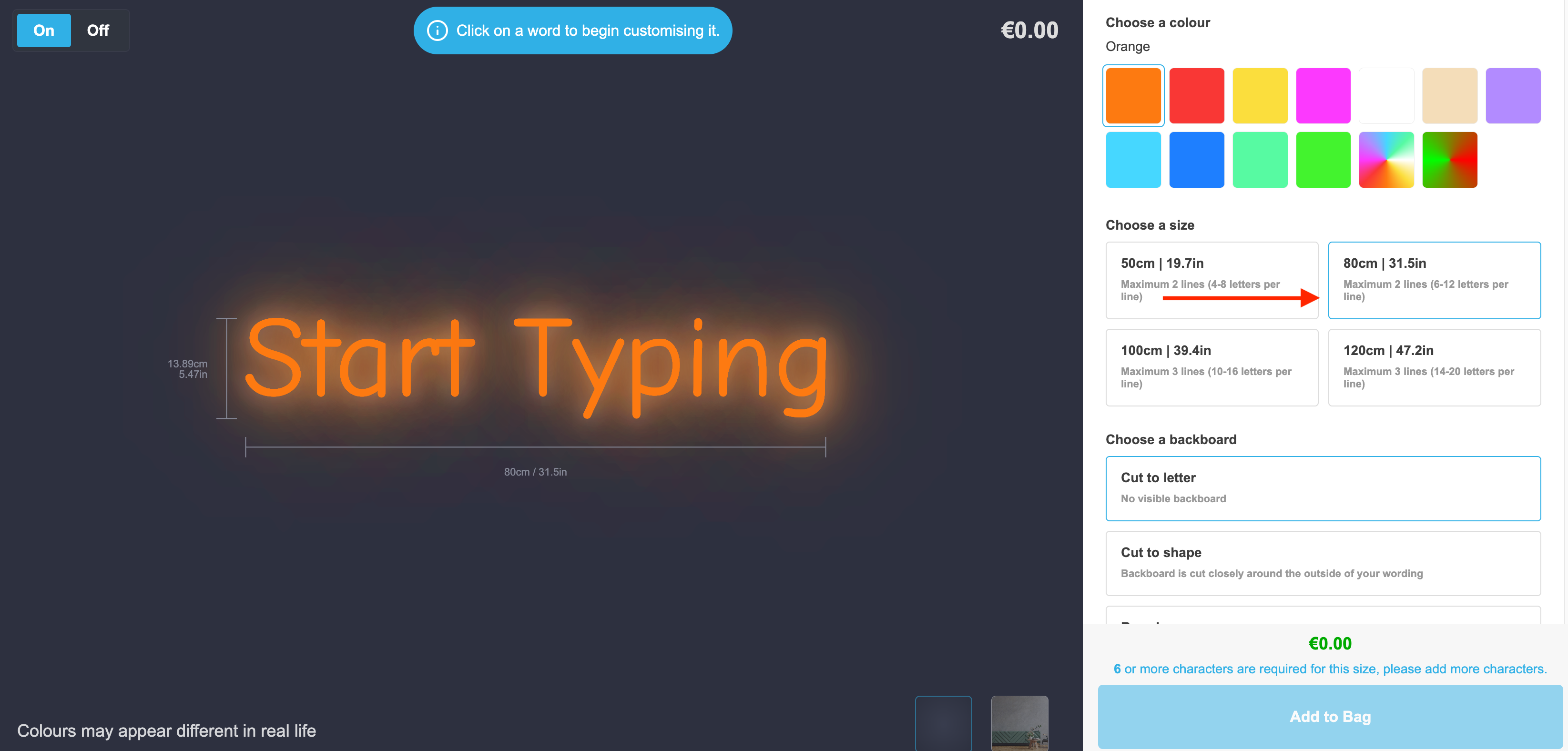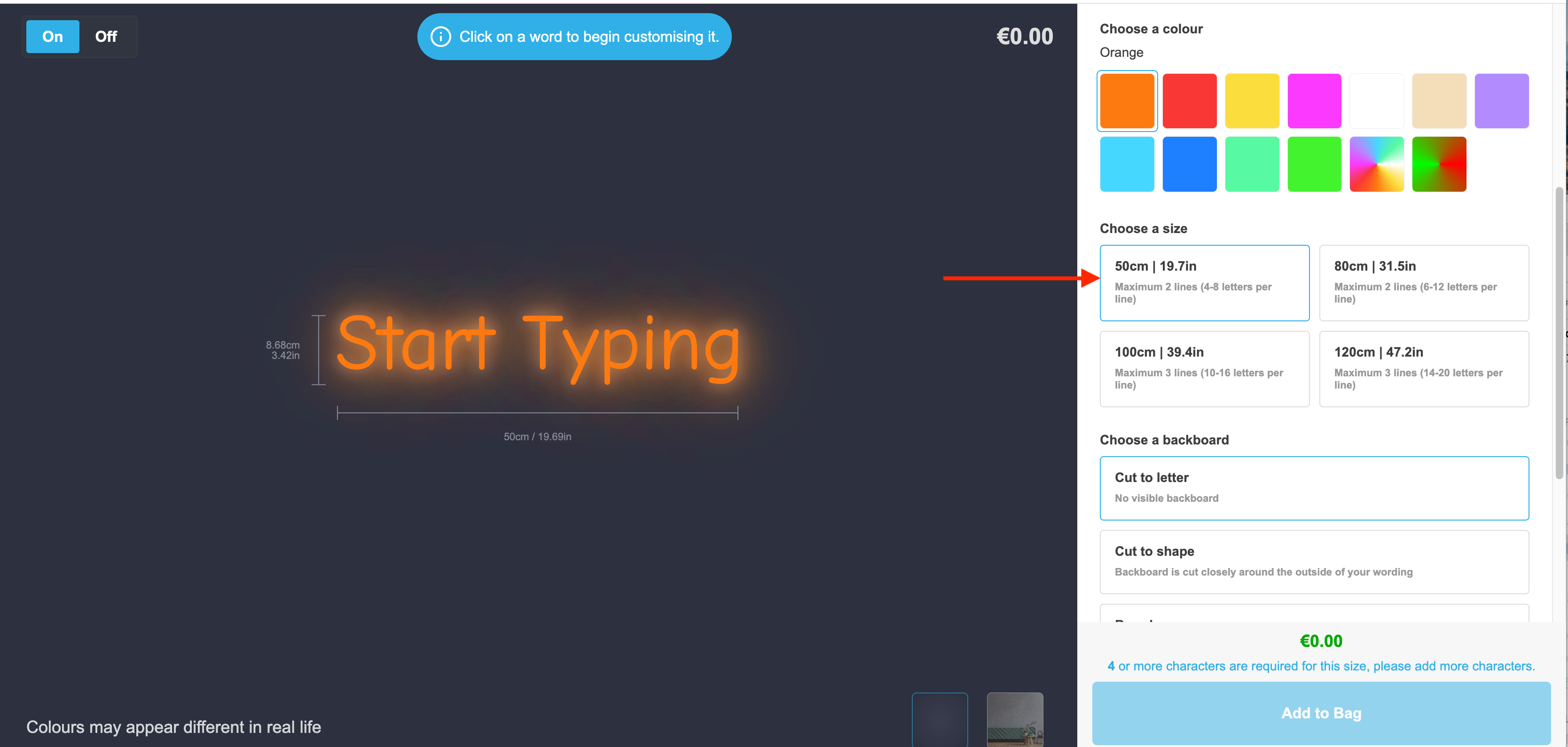 You can give the visualiser the appearance of the sign getting bigger or smaller relative to the size the customer has chosen.
