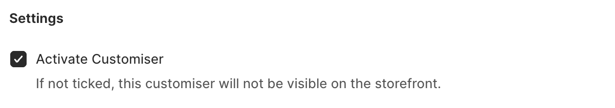 When creating or duplicating a new customiser on your store, you may see that the state of a customiser can be either “Active” or “Inactive”.