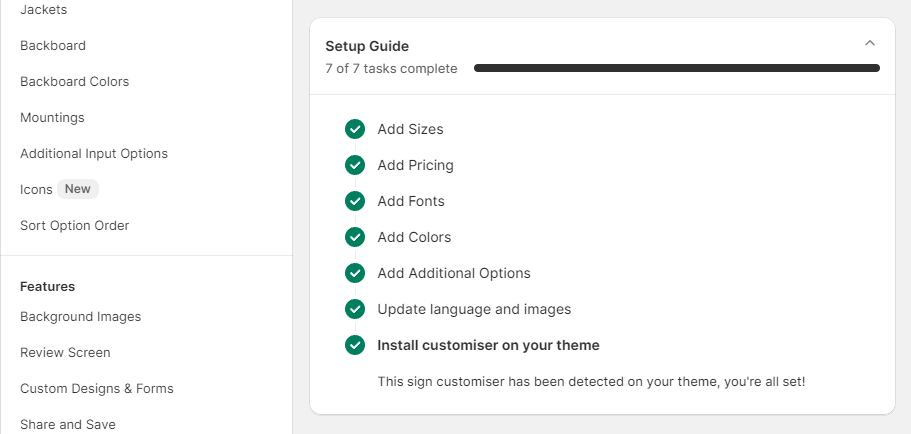 Refer to the Setup Guide section and complete all 7 tasks to finalize the customiser.