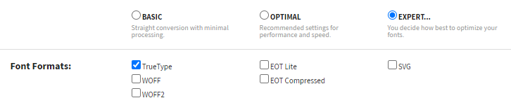 - Font Formats: TrueFont (This option allows you to choose the output font type. We recommend selecting TrueFont since it is the only font type accepted by Sign Customiser.)