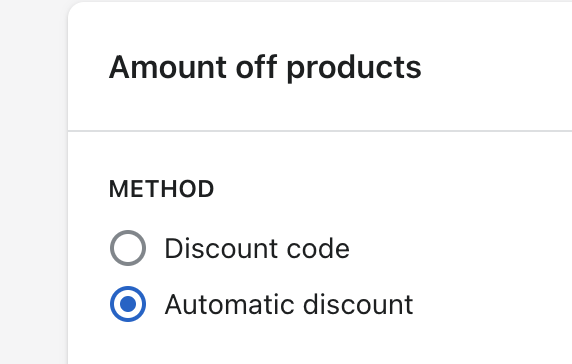 5. Click on Create Discount and select the discount type you would like to be automatically applied to custom neons. The type of discount you choose is up to you, the only important part is it must be an automatic discount.