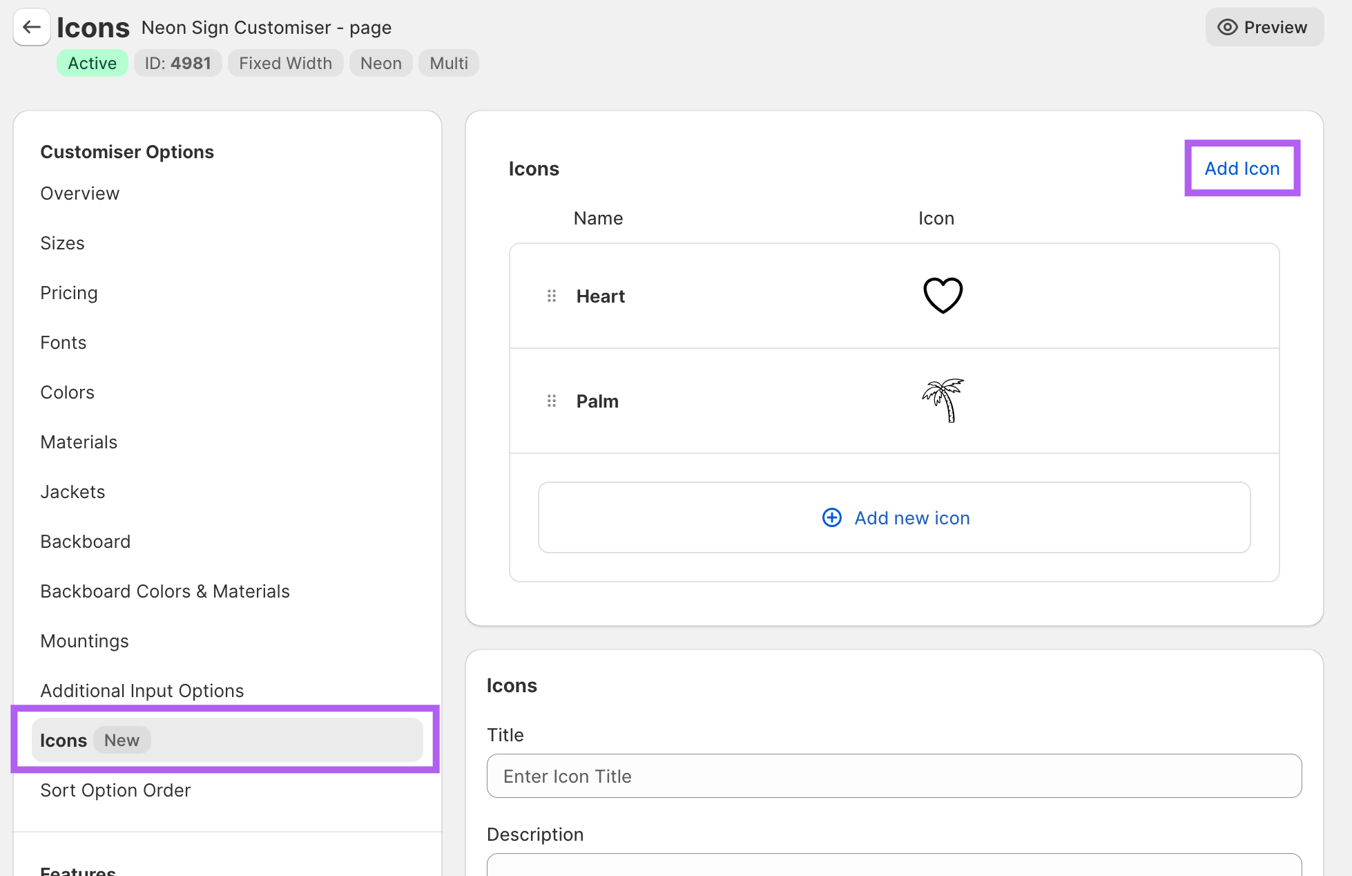 With our Icons feature, you can upload SVG files that your customers can incorporate into their sign designs. Follow the steps below to get started.