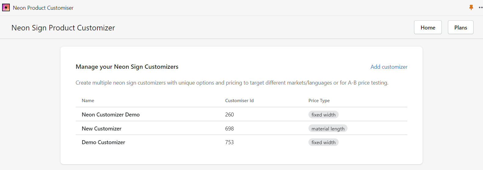 1. Click the Customiser which you want to change: