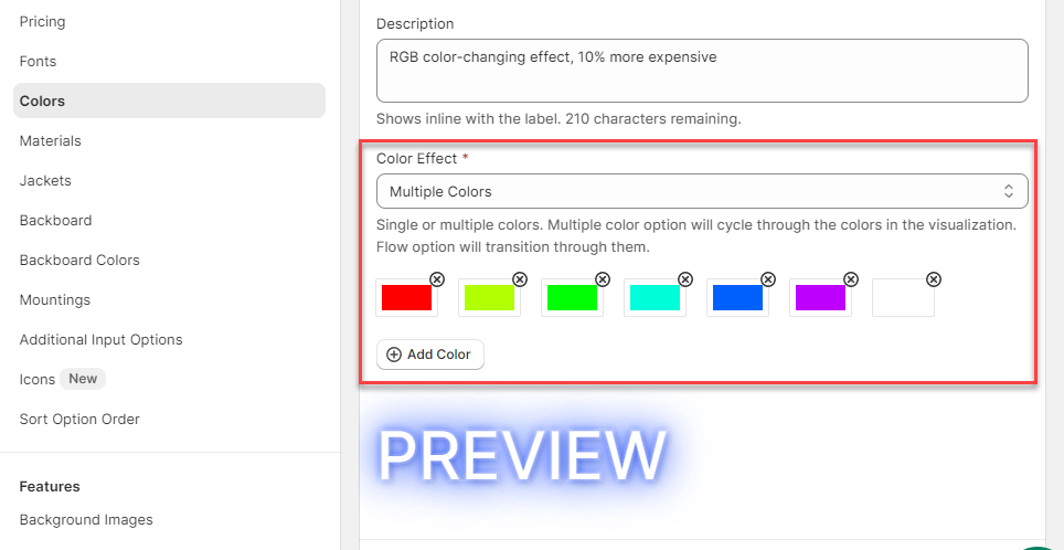 Hit Save to save your setup. By following these instructions, you can successfully add multiple RGB colours to your customiser, enhancing the customisation options for your customers.