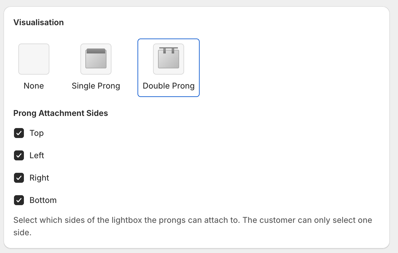 Select the sides that you would like the customer to select from; these options will also update the visualisation when selected.