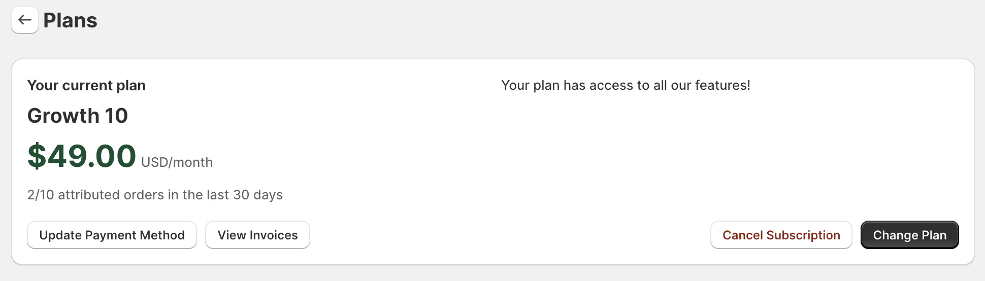 ⚠️ Important: Canceling a legacy plan will prevent you from re-subscribing to it. If you decide to return, you will need to select either the Seed or Growth plan.