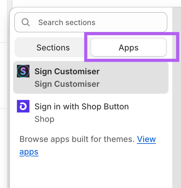 Click on the Apps tab and select Sign Customiser.