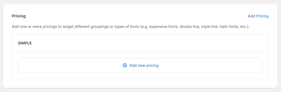 Later, when you upload a new font, you can assign it to pricing. For more information on adding new fonts, please refer to this guide.
