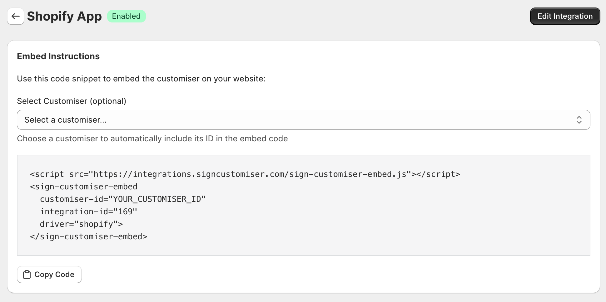 1. Navigate to the admin of Sign Customiser for your Shopify store.
