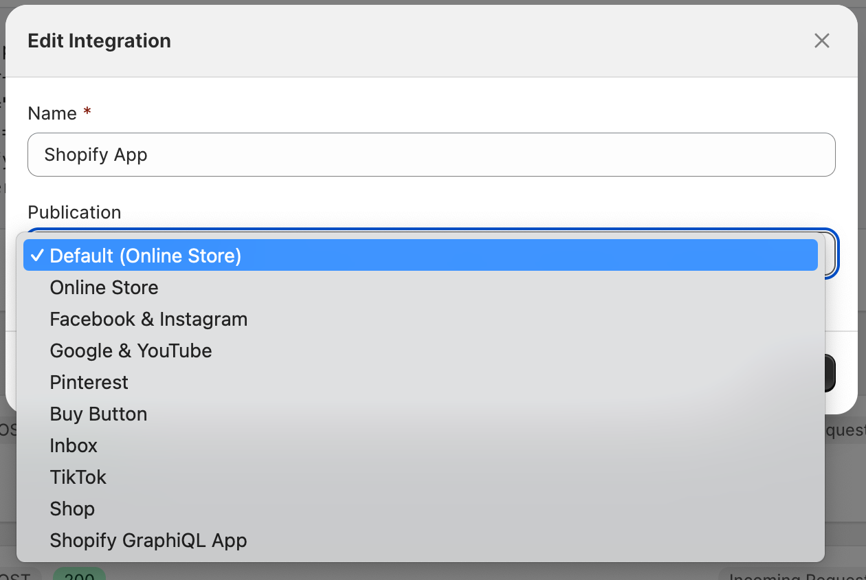 6. Select the Sales Channel you wish to automatically publish to by clicking on the “Publication” select option and selecting one.