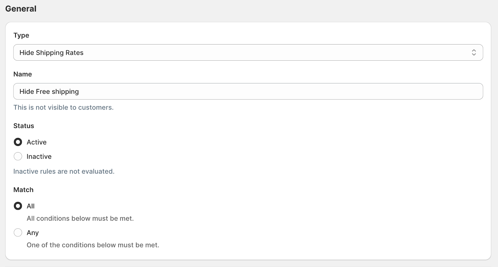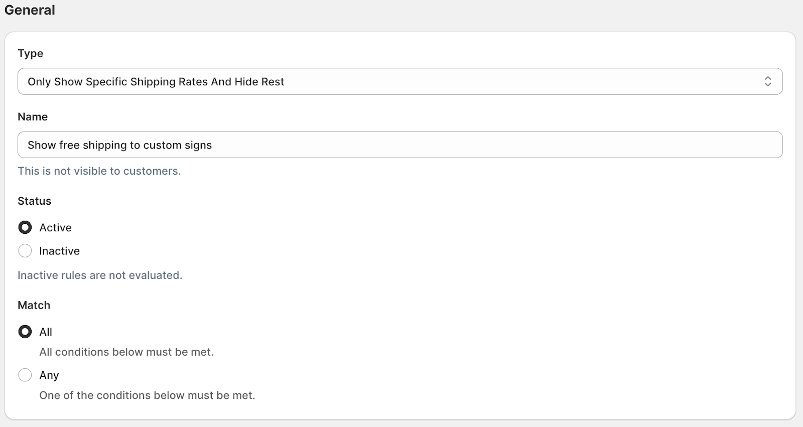 Under Type, select Only Show Specific Shipping Rates and Hide the Rest.