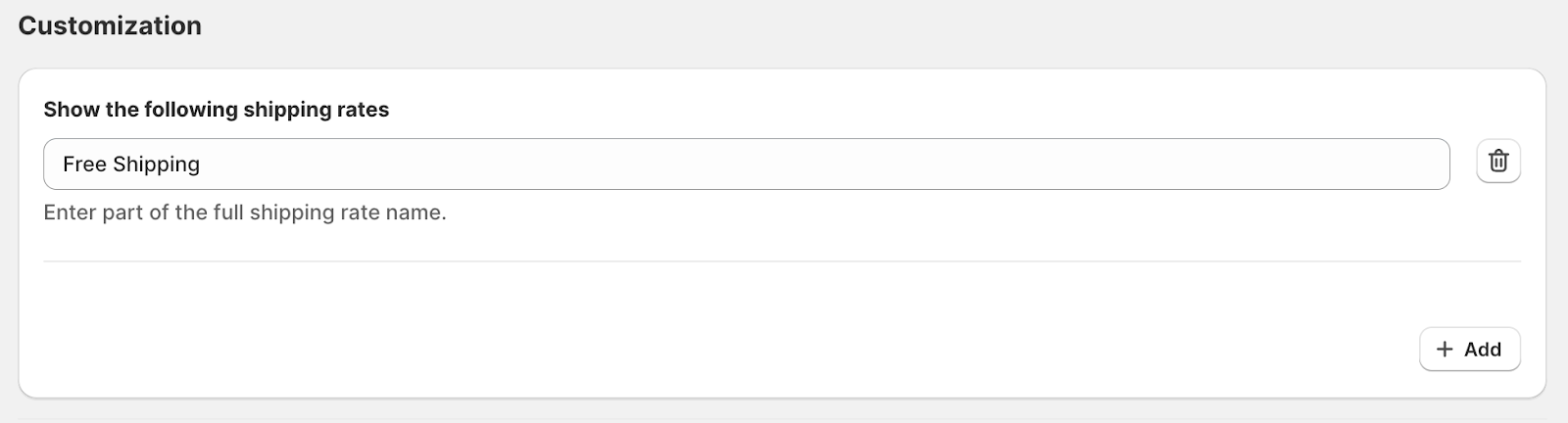 In the Customisation section, enter a name for your custom shipping rate. Note: Remember this name, as you will need to use it when creating the shipping rate in Shopify’s Shipping Profiles.