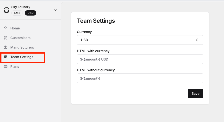 To change the currency for your team account, please follow these steps.